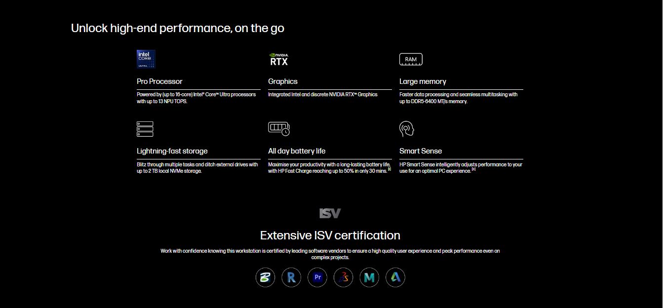 Product HP ZBook G1i 16' WQXGA 2.5K IR Intel U9-285H 32GB DDR5 1TB SSD Windows 11 PRO RTX 500 GPU 13 TOPS Thunderbolt 3yrs OS 1.7kg Mobile Workstation