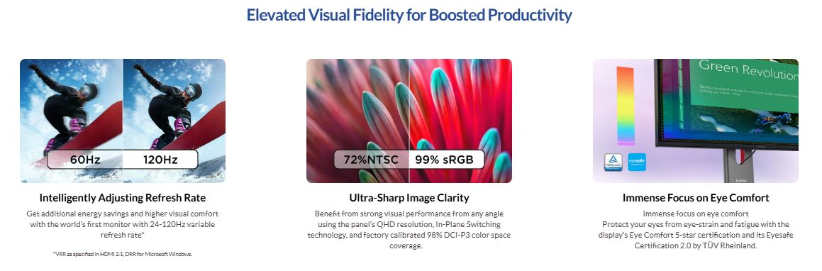 LENOVO ThinkVision P27Q-40 27' 120Hz QHD IPS Monitor 2K 2560x1440 16:9 4ms Height Adjustable Tilt Pivot Swivel HDMI DP USB hub VESA Tiny Support 3yr
