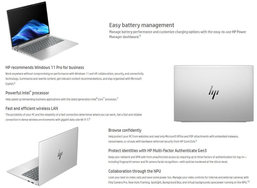 Product HP EliteBook 6 G1i 14' WUXGA Intel U7-255U 16GB DDR5 512GB SSD Windows 11 PRO 4G-LTE Intel GPU NPU 12 TOPS Thunderbolt Fingerprint 3yr OS 1.4kg