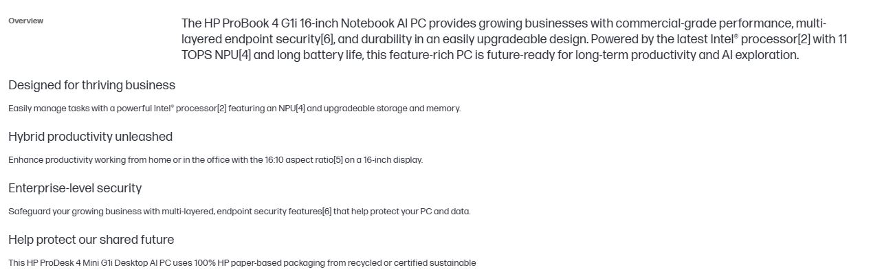 Product HP ProBook 4 G1i 16' WUXGA Intel U5-225U 16GB DDR5 512GB SSD Windows 11 PRO NPU 12 TOPS Intel GPU Fingerprint Backlit 1YR OS 1.7kg